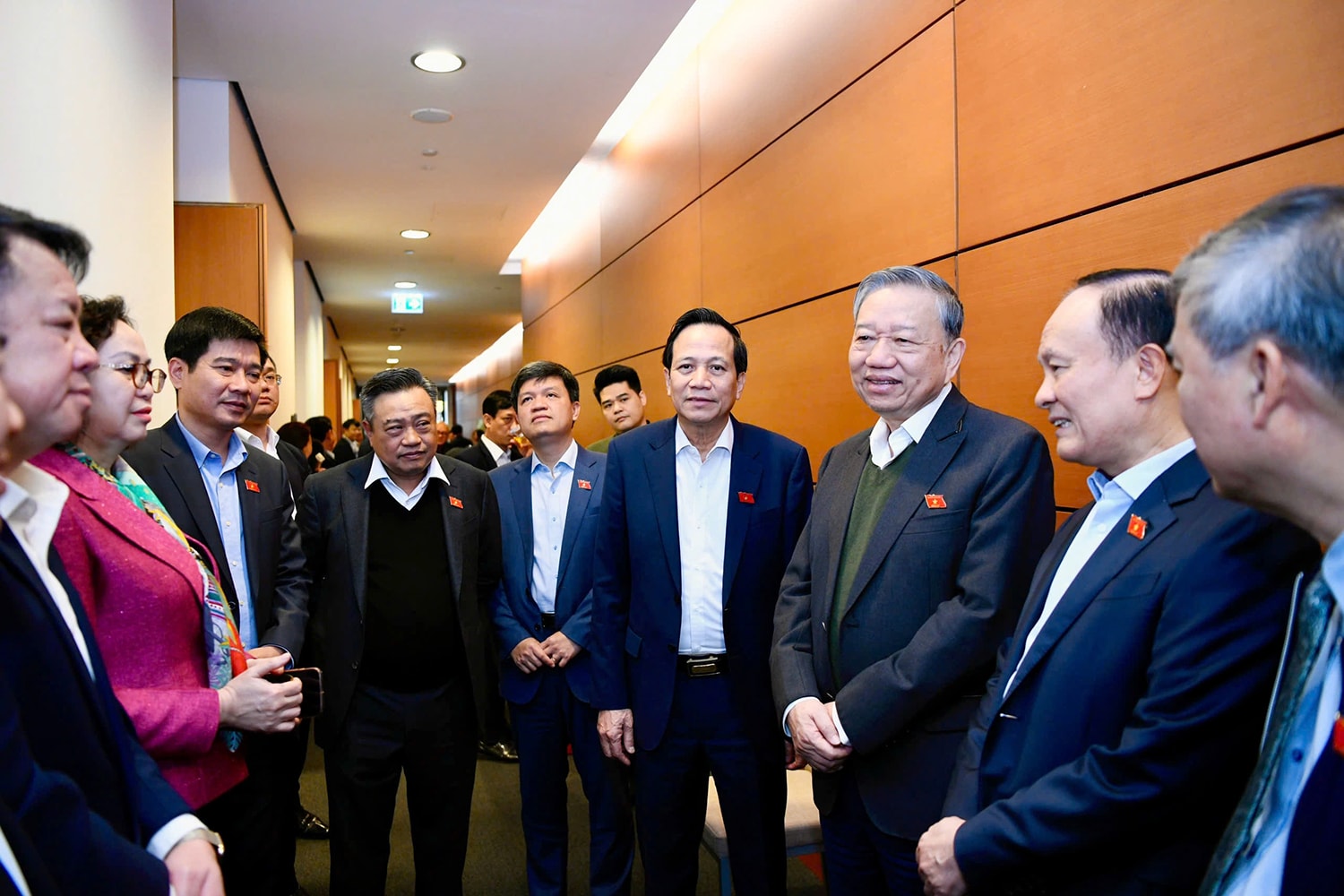 Tổng Bí thư Tô Lâm trao đổi với các đại biểu Quốc hội bên lề